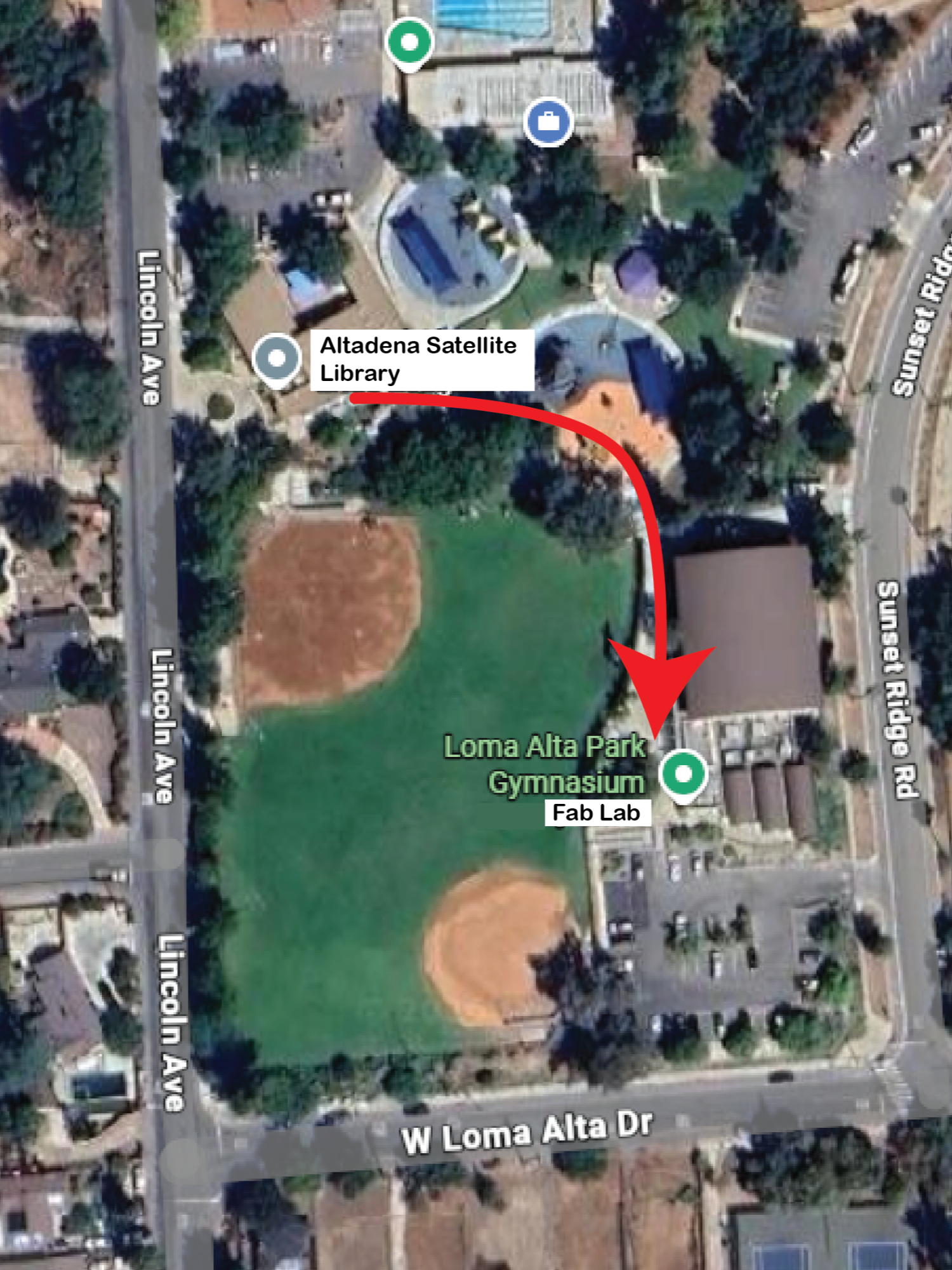 Our Fab Lab is now located in the classroom at the Loma Alta Park Gymnasium, 3330 Sunset Ridge Rd.